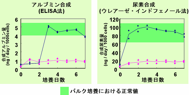 図3 最適条件下マイクロチップ内培養による肝細胞の機能維持